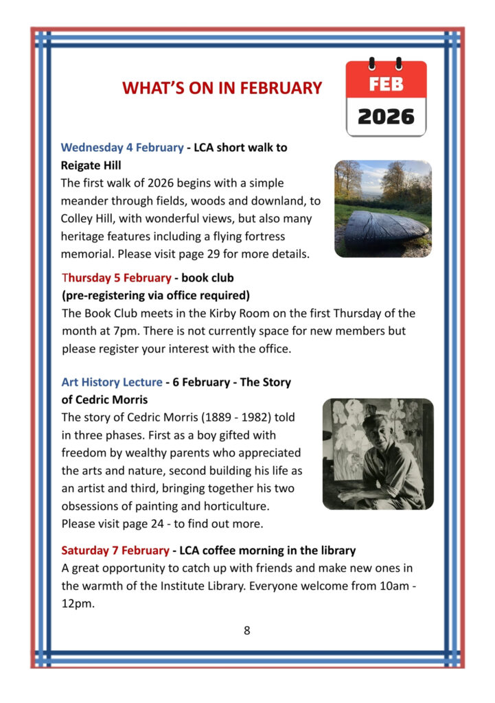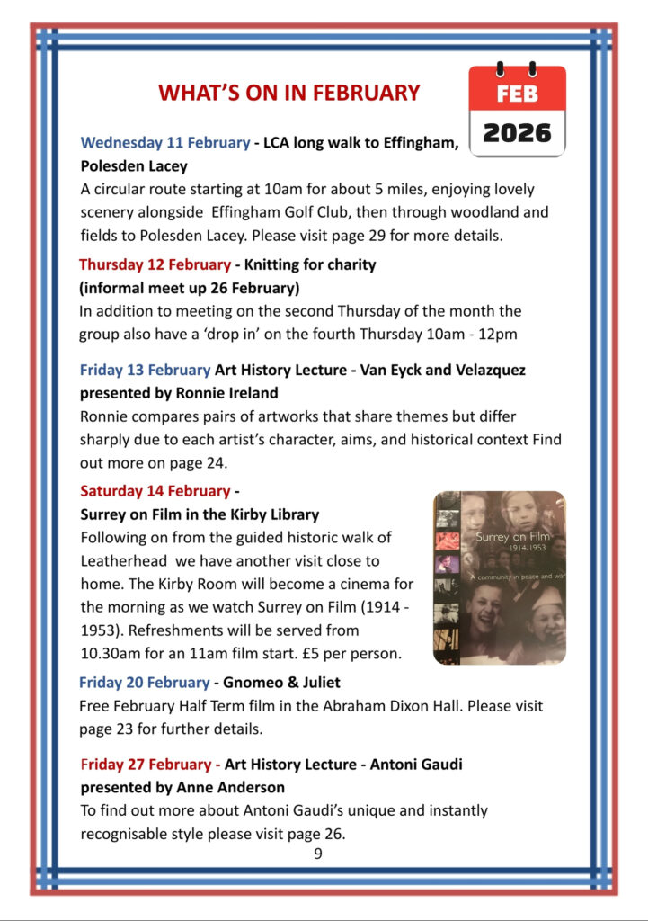 Further details on all our events, including the ‘what’s on’ listing to the left, can be found in the latest edition of our LCA Newsletter (January, February, March, April 2026). Click here to find out more.